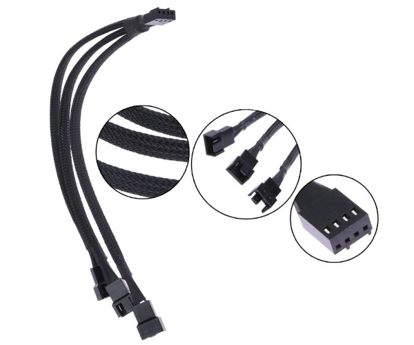 מפצל מאוררים מחיבור 4 פין אחד ל3 חיבורי 4 פין עטיפת שרוול איכותית
