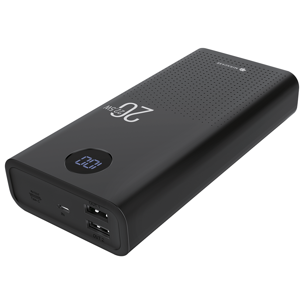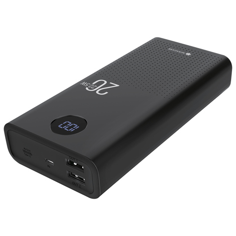 סוללת גיבוי ניידת ואיכותית מבית Miracase בעלת שקעי USB TYPE-C ו- Micro USB בקיבולת של 20000mAh. הסוללה בעלת עיצוב אלגנטי עם ליבת פולימר ומסך דיגיטלי הנותן חיווי על מצב הסוללה.